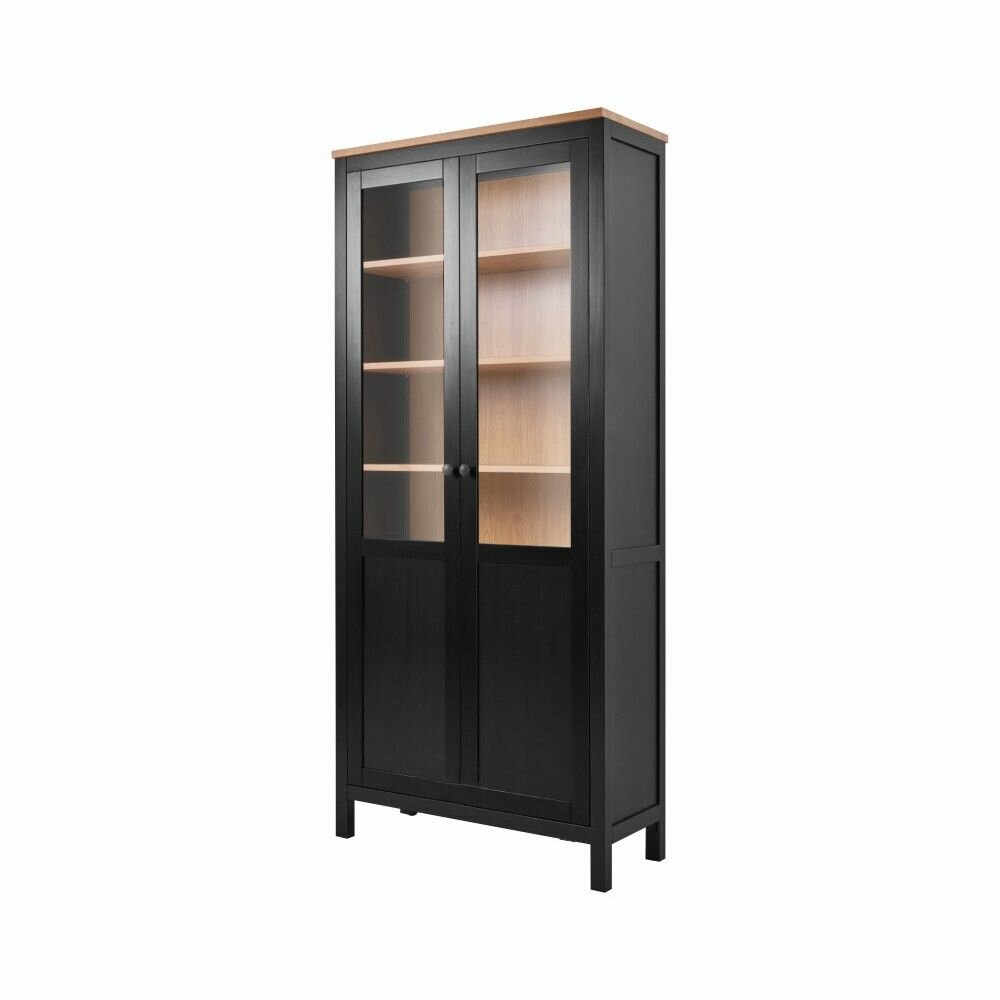 Купить Шкаф-витрина в гостиную Хемнэс по технологии икеа, чёрный/светло-коричневый из массива сосны, 89х36х197см с доставкой по всей России.