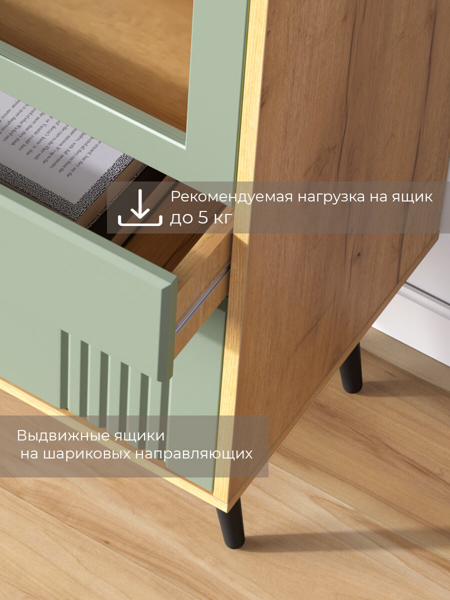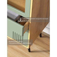 Цвет шкафа - серо-зеленый в сочетании с оттенком дуб крафт золотой, что придает ему изысканный и стильный вид. Поверхность фасадов матовая, что делает шкаф еще более привлекательным.