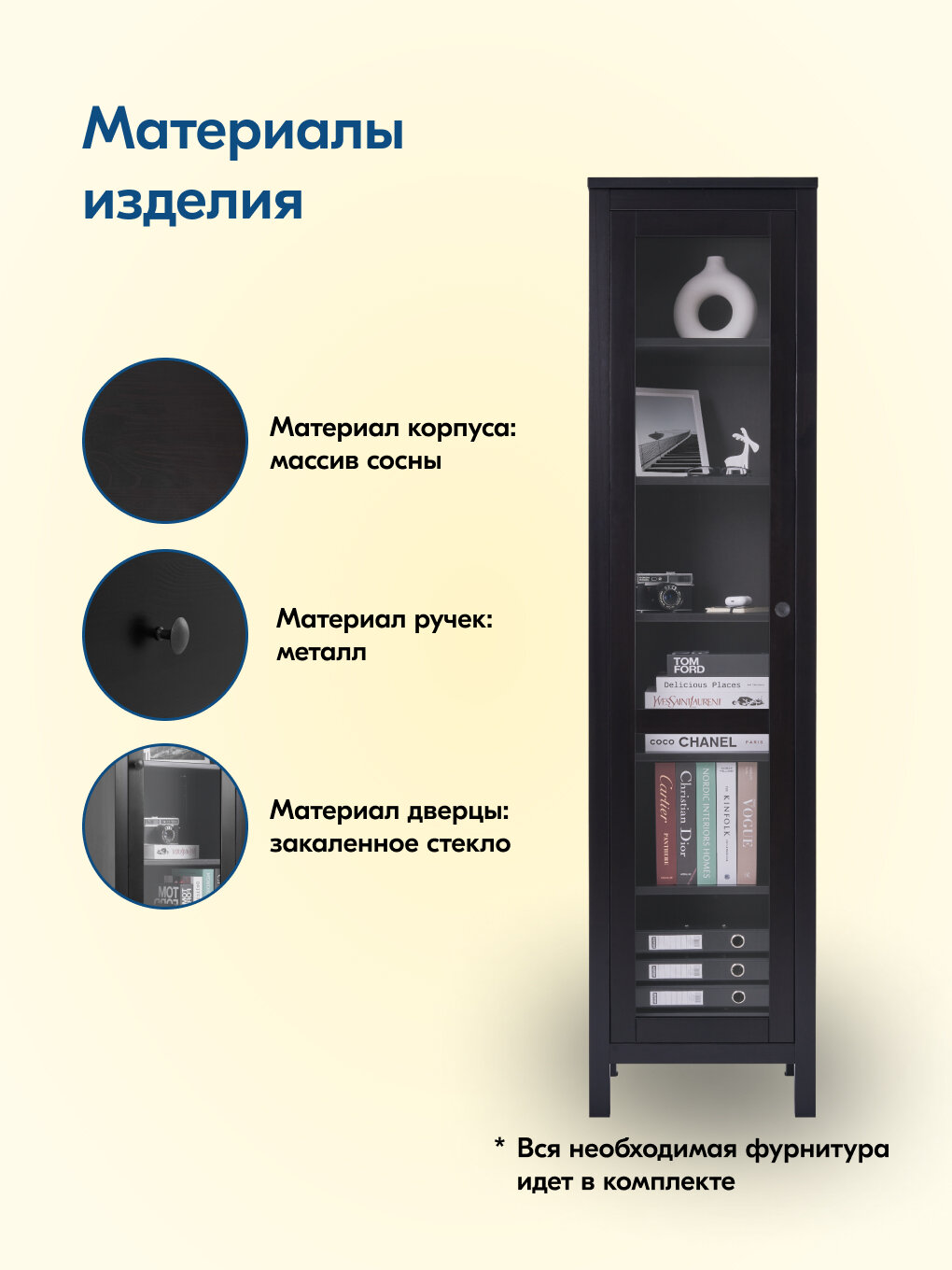 Шкаф-витрина кымор стекло/стекло 49х198х37, чёрный, массив сосны: сравнение цен, характеристики, фото, актуальное наличие и цены.