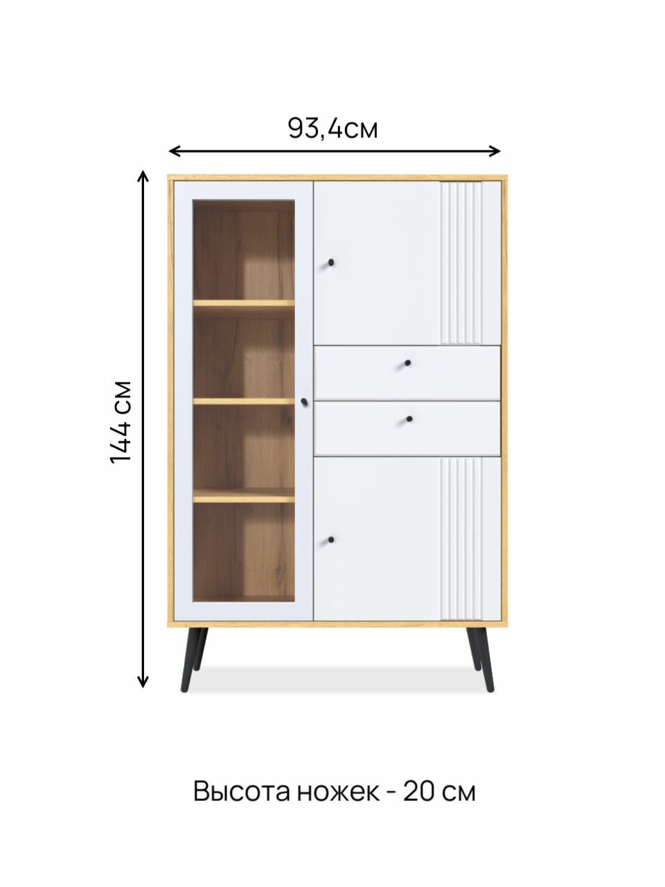 Компактные размеры (93,4х40х144 см) позволяют разместить шкаф даже в небольших помещениях.