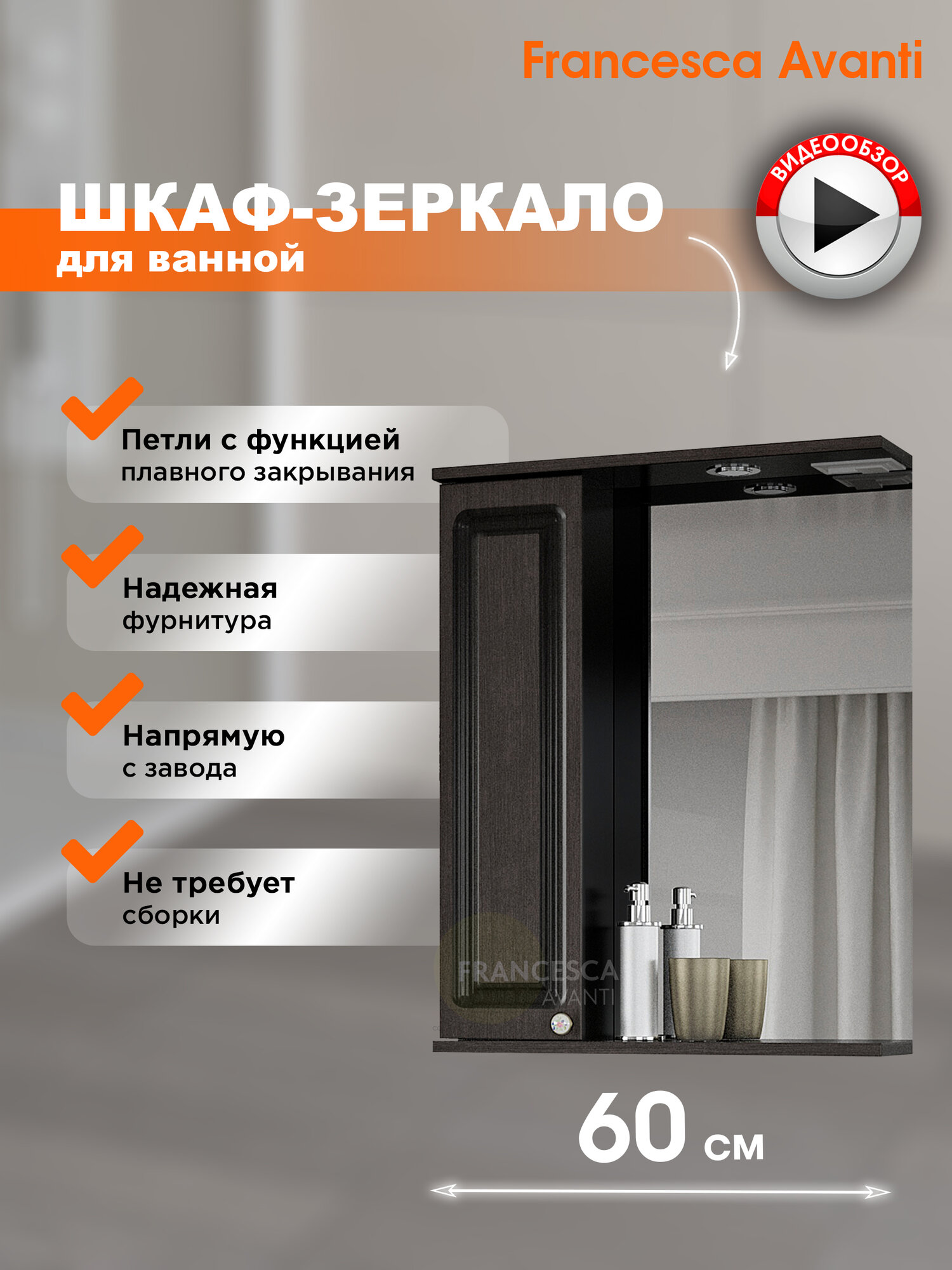 Купить Зеркало в ванную Francesca Avanti Империя 60 со шкафом, венге, левый с доставкой по всей России. Зеркало в ванную Francesca Avanti Империя 60 со шкафом, венге, левый: сравнение цен, характеристики, фото, актуальное наличие и цены.