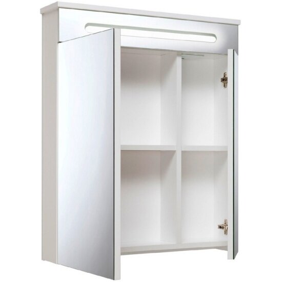 Зеркальный шкаф для ванной RUNO парма - сочетание безупречного стиля и современных тенденций в дизайнерском оформлении ванной комнаты. Шкаф зеркало для ванной парма - выполнено в традиционном и всегда модном белом цвете и гармонично впишется в любой интерьер ванной комнаты. Шкафчик в ванную имеет две распашные дверцы с зеркальным фасадом. Шкаф в ванную оборудован петлями со встроенным доводчиком, врезным светодиодным светильником 220 В и розеткой с выключателем. Внутри шкафа - две внутренние полки. Мебель для ванной RUNO - красота и практичность в мелочах!