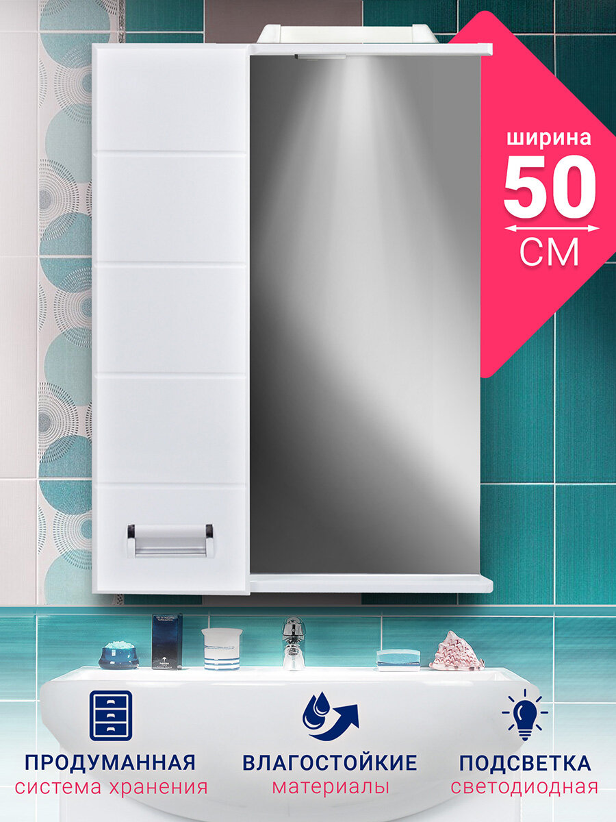 Купить Шкаф зеркало с подсветкой в ванную комнату Вега 50, белый, левый DORATIZ 2711.064 с доставкой по всей России. Шкаф зеркало с подсветкой в ванную комнату Вега 50, белый, левый DORATIZ 2711.064: сравнение цен, характеристики, фото, актуальное наличие и цены.