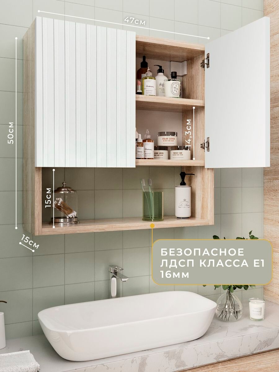 Этот навесной шкаф будет идеальным решением для вашей прихожей, кухни, ванной, туалета гостиной или балкона. Подвесной пенал с рифлеными дверцами имеет современное открывание дверей без ручки. Внутри есть вместительная и эргономичная полочка. Шкафчик дуб сонома, может быть, как навесным (в комплекте есть крепления-навесы), так и напольным. Можно использовать комплект из двух таких шкафов, ведь вместе они смотрятся очень лаконично. Светлый навесной створчатый шкаф с фрезеровкой будет прекрасно смотреться в любом интерьере. Компактный, но при этом достаточно вместительный. Его простота и стиль, это залог красоты и удобства. Изготовлен из безопасного ЛДСП класса Е1 16 мм. Высота шкафчика 50 см, глубина 15 см, ширина 50 см, высота нижней полки 15 см, высота внутренних полок 14 см. У него чистый цвет, поэтому будет отлично сочетается с любой современной мебелью и максимально будет прост в уборке. Элементарная сборка (в комплекте есть инструкция. Современное открывание без ручек; Компактный размер – не занимает много места; Светлая поверхность, легко очищается от пыли и загрязнений. Вы сможете найти ещё больше товаров внутри нашего магазина Философия уюта!
