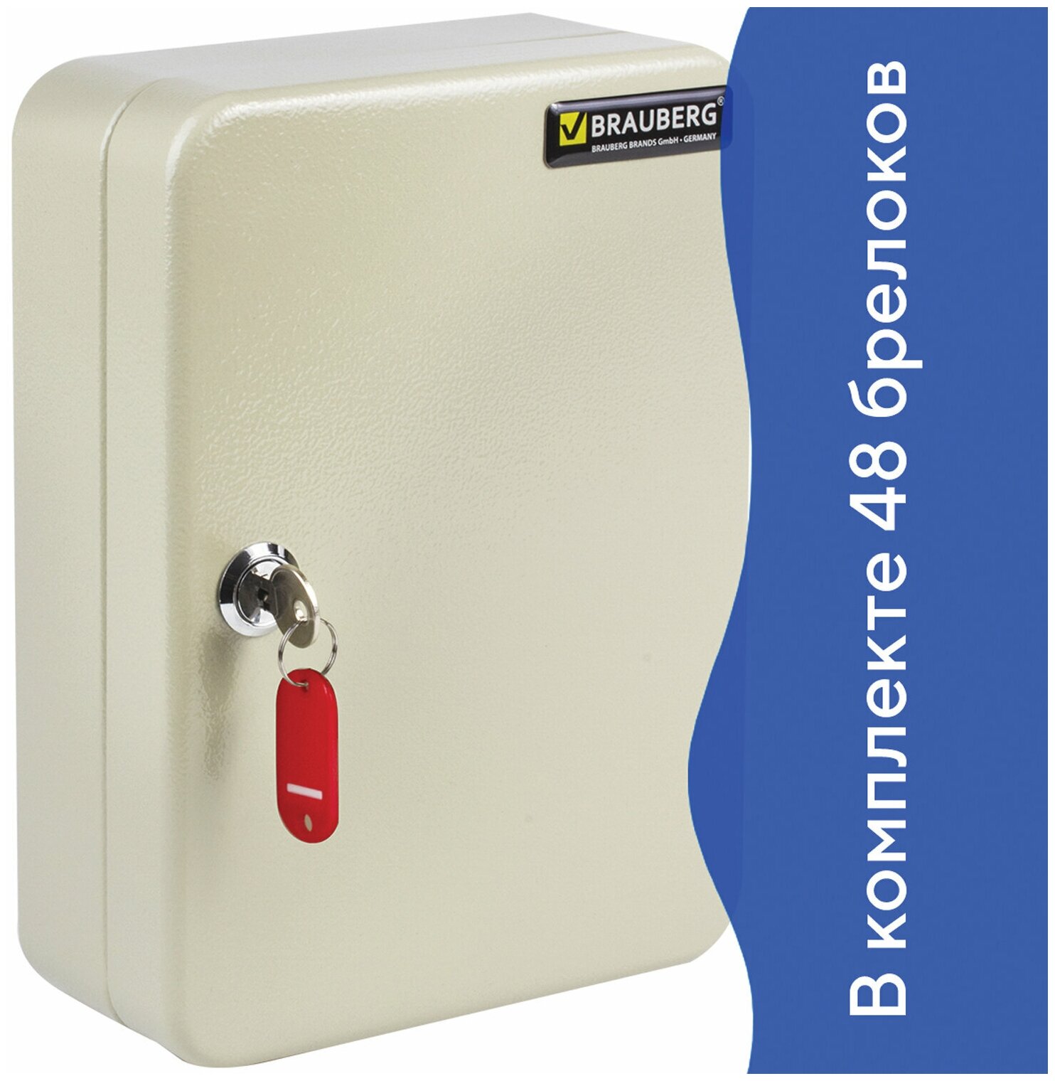 Шкафчик (Ключница) на 48 ключей BRAUBERG, 250х180х80 мм, с замком, + 48 брелоков, серый, 290338 (290338): сравнение цен, характеристики, фото, актуальное наличие и цены.