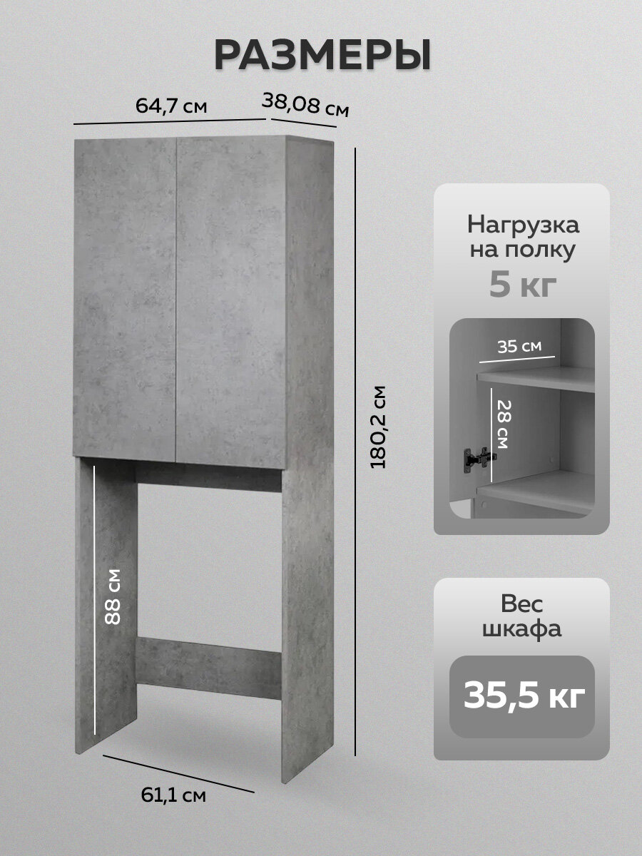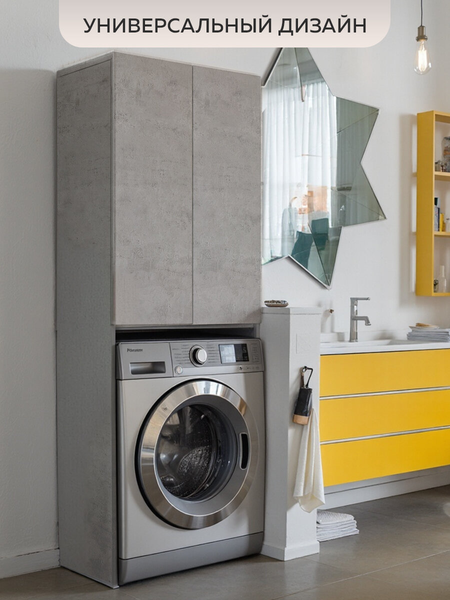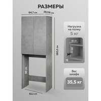 Габаритные размеры шкафчика позволяют удобно разместить его над стиральной машиной и максимально эффективно использовать доступное пространство. Внутри шкафчика можно хранить различные предметы гигиены и другие необходимые вещи, поддерживая порядок и чистоту в ванной комнате.