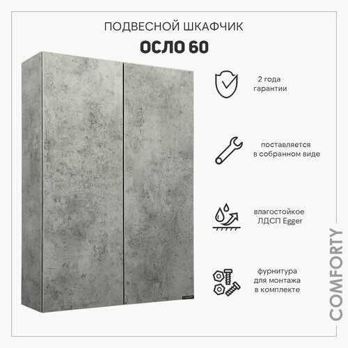 Шкафчик в ванную 60 см навесной, бетон светлый Comforty Осло 60: сравнение цен, характеристики, фото, актуальное наличие и цены.