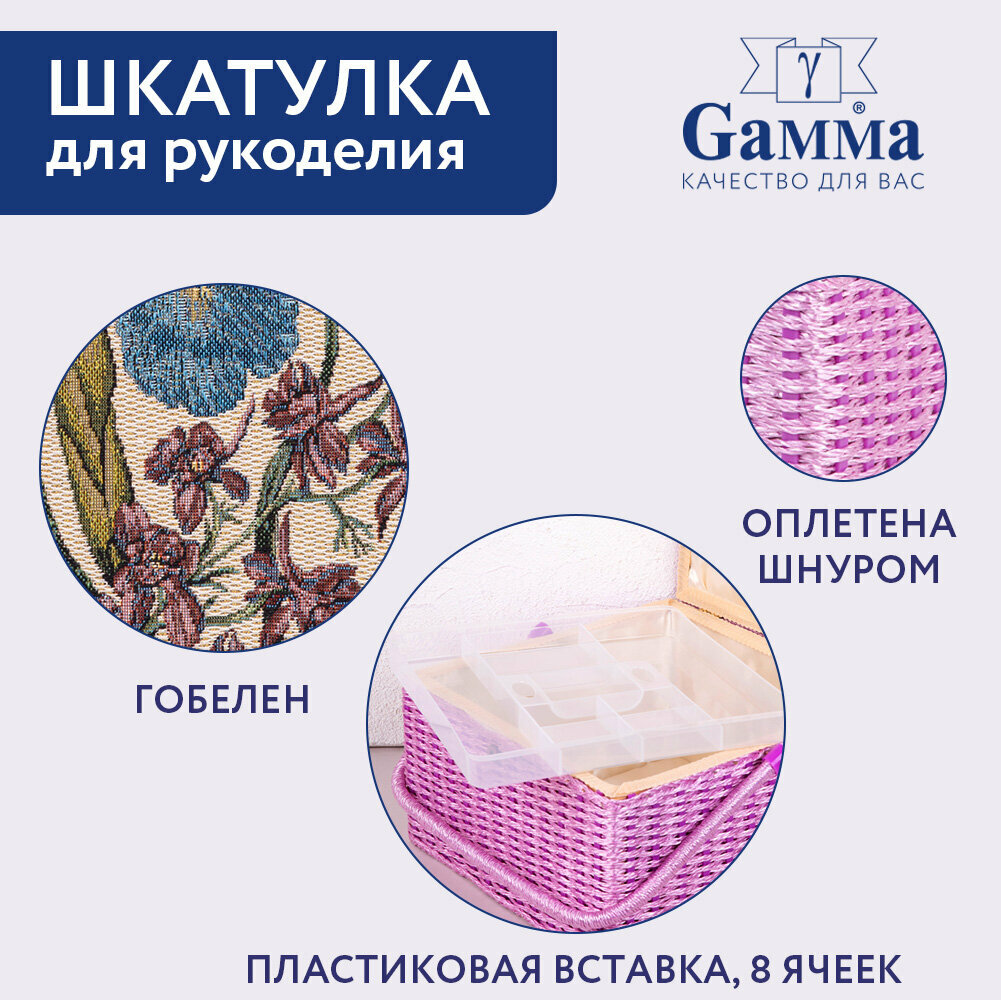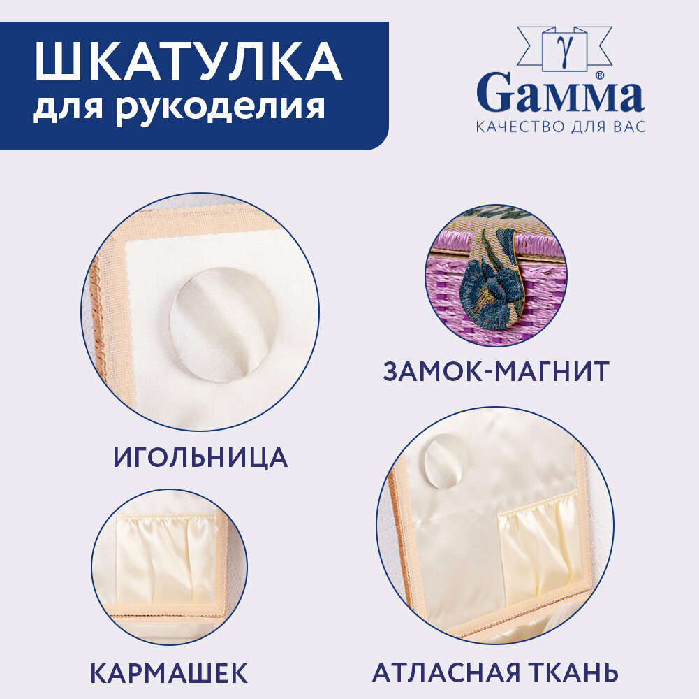 Купить Шкатулка для швейных принадлежностей «Gamma» SBJ-004, 31.5×31.5×19 см, Букет ирис и нарцисс с доставкой по всей России.