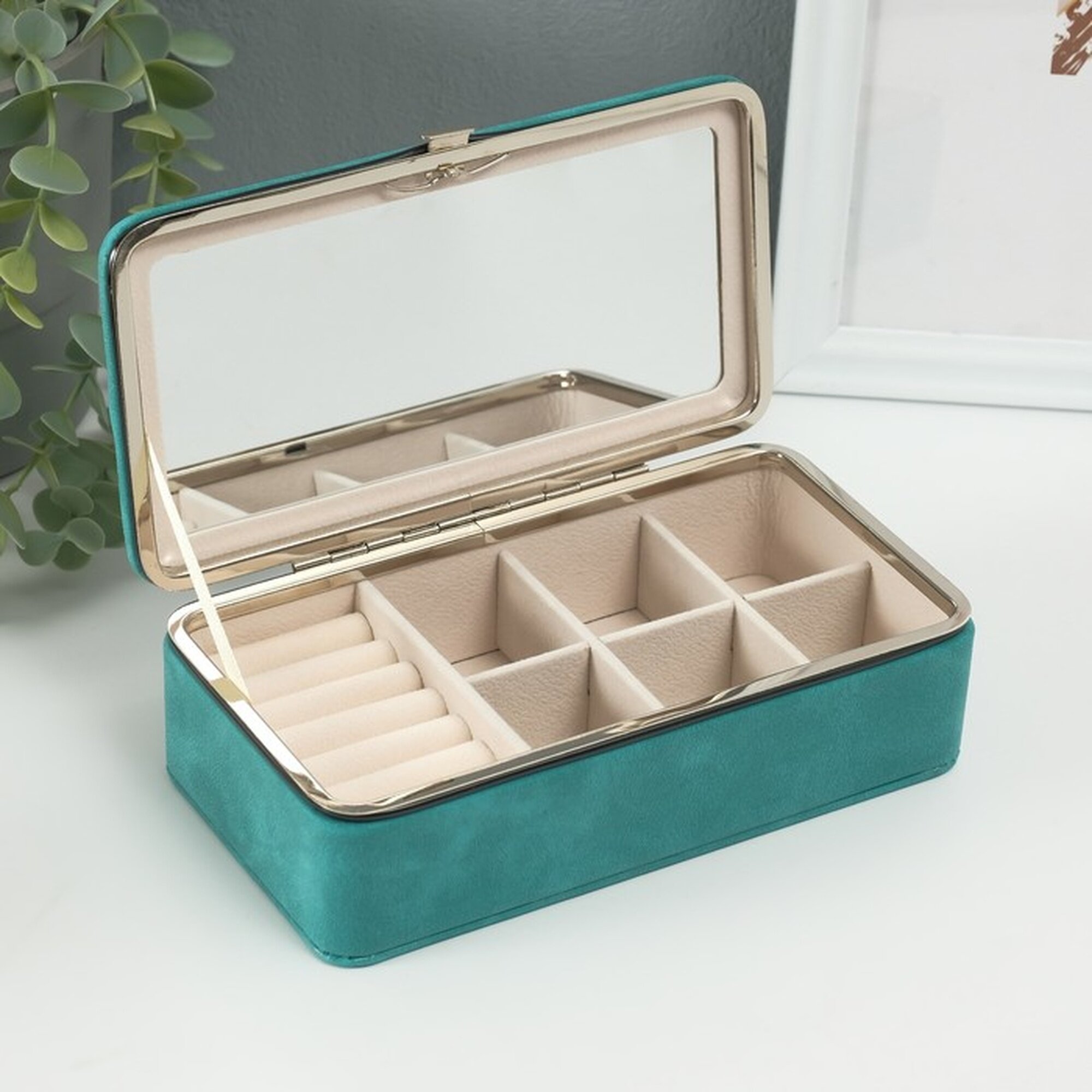 Шкатулка для украшений «Бархатная кожа», с зеркалом, искусственная кожа, морская вода, 10×18×6 см: сравнение цен, характеристики, фото, актуальное наличие и цены.