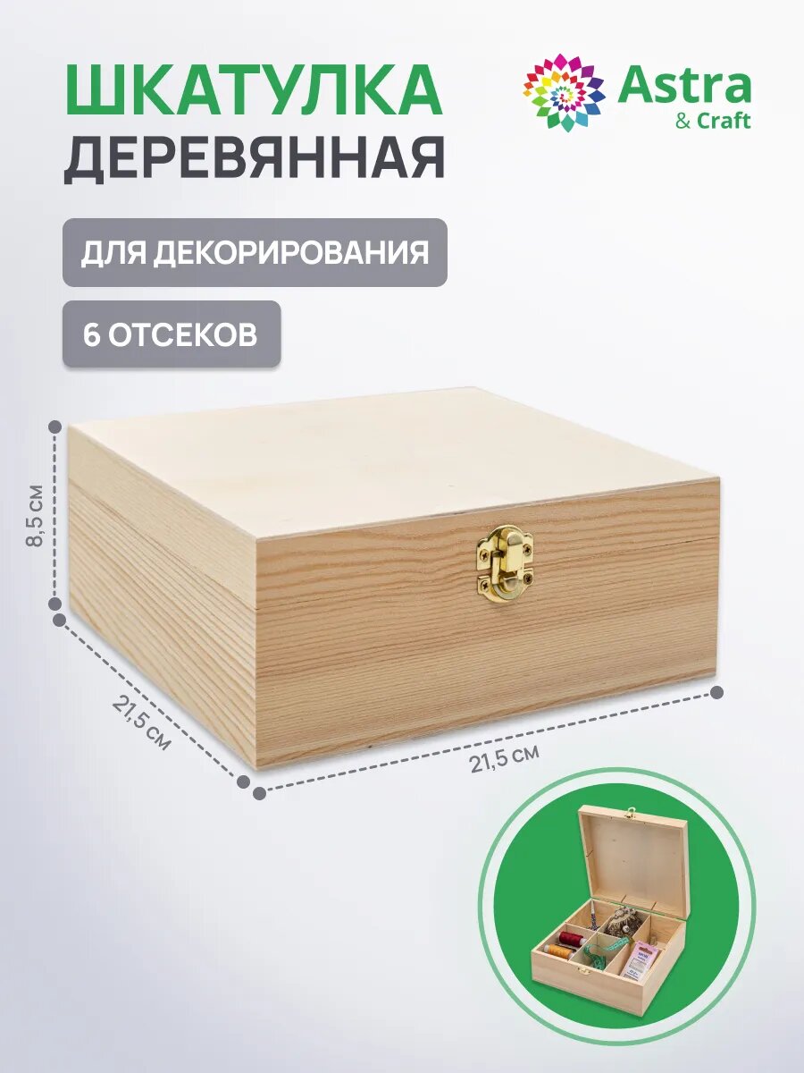 Шкатулка для украшений и мелочей деревянная, 21,5*21,5*8,5 см, для росписи и декорирования, Astra&Craft: сравнение цен, характеристики, фото, актуальное наличие и цены.