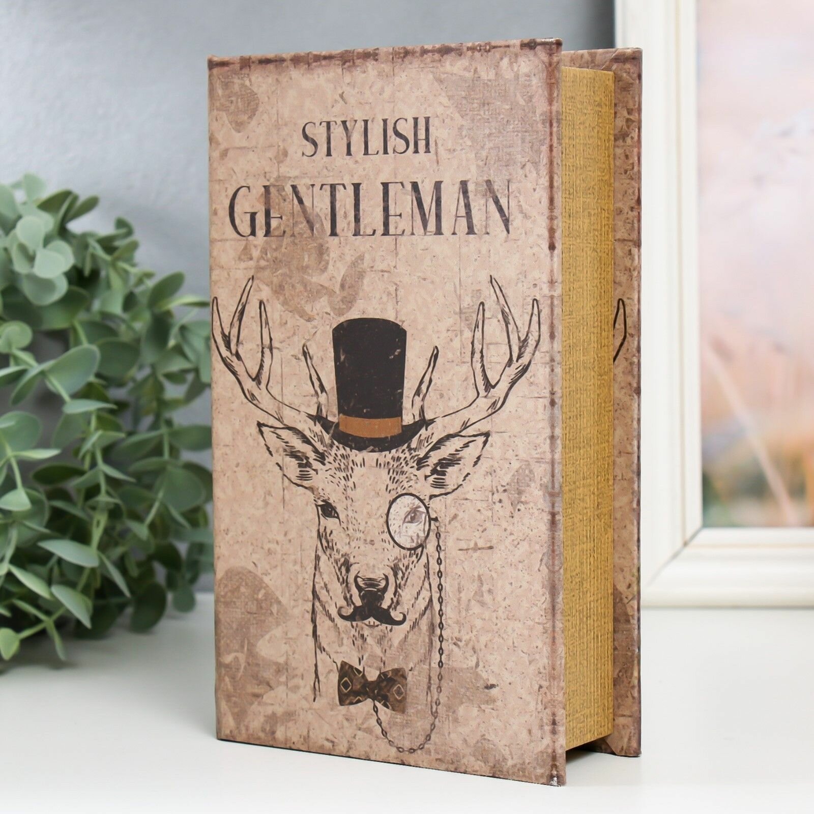 Купить Шкатулка книга-сейф Олень в цилиндре и с пенсне , дерево и искусственная кожа, с замком, 21 13 5 см с доставкой по всей России.