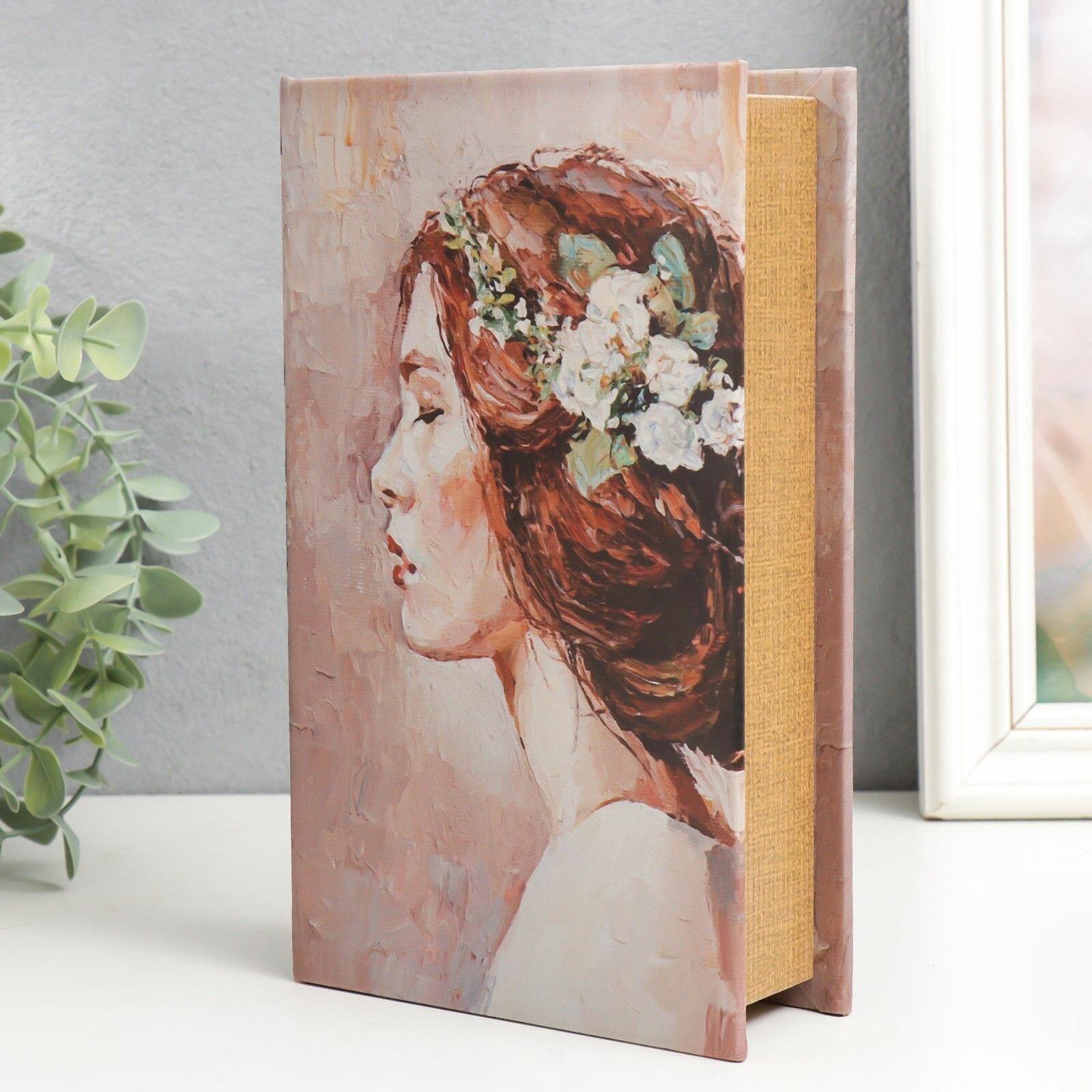 Купить Шкатулка книга-сейф Профиль девушки с цветами в волосах , дерево, искусственная кожа, 21 13 5 см с доставкой по всей России.