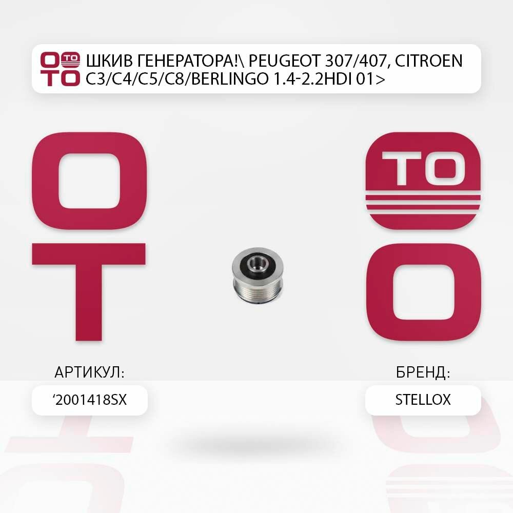 Шкив генератора peugeot ( пежо ) 307/407, citroen ( ситроен ) c3/c4/c5/c8/berlingo 1.4-2.2hdi 01> Stellox 2001418SX, 2001418SX, 2001418SX: сравнение цен, характеристики, фото, актуальное наличие и цены.
