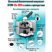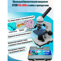Микроскоп ATOM 40x-800x может быть использован для проведения учебных и лабораторных работ в области биологии в школах, лицеях, дошкольных учебных заведениях, а также в домашних условиях. Отличительные особенности серии - классический дизайн, качественная стеклянная оптика, эргономичный корпус и двойная светодиодная подсветка.