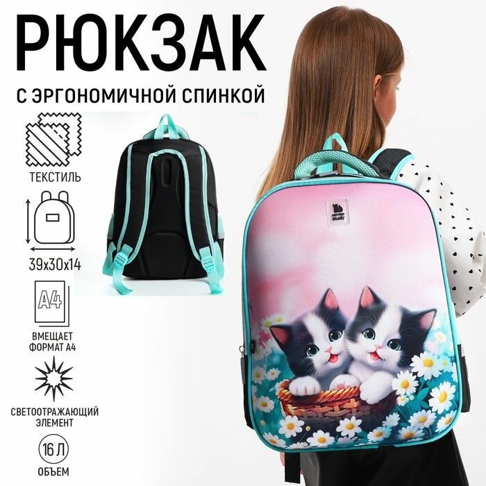 Школьный каркасный рюкзак для девочки «1 сентября: Милые котята» с эргономичной спинкой, ранец с двумя отделениями и светоотражающим элементом, детская сумка для школы, 39х30х14 см: сравнение цен, характеристики, фото, актуальное наличие и цены.