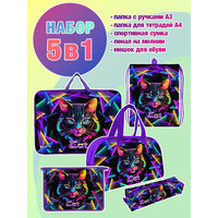 Школьный набор «GEOMETRIC CAT» (папка с ручками А3, папка для тетрадей А4, мешок для обуви, пенал, спортивная сумка): сравнение цен, характеристики, фото, актуальное наличие и цены.