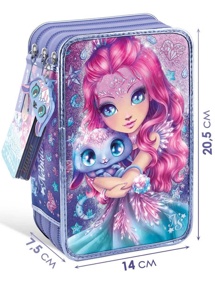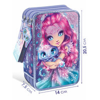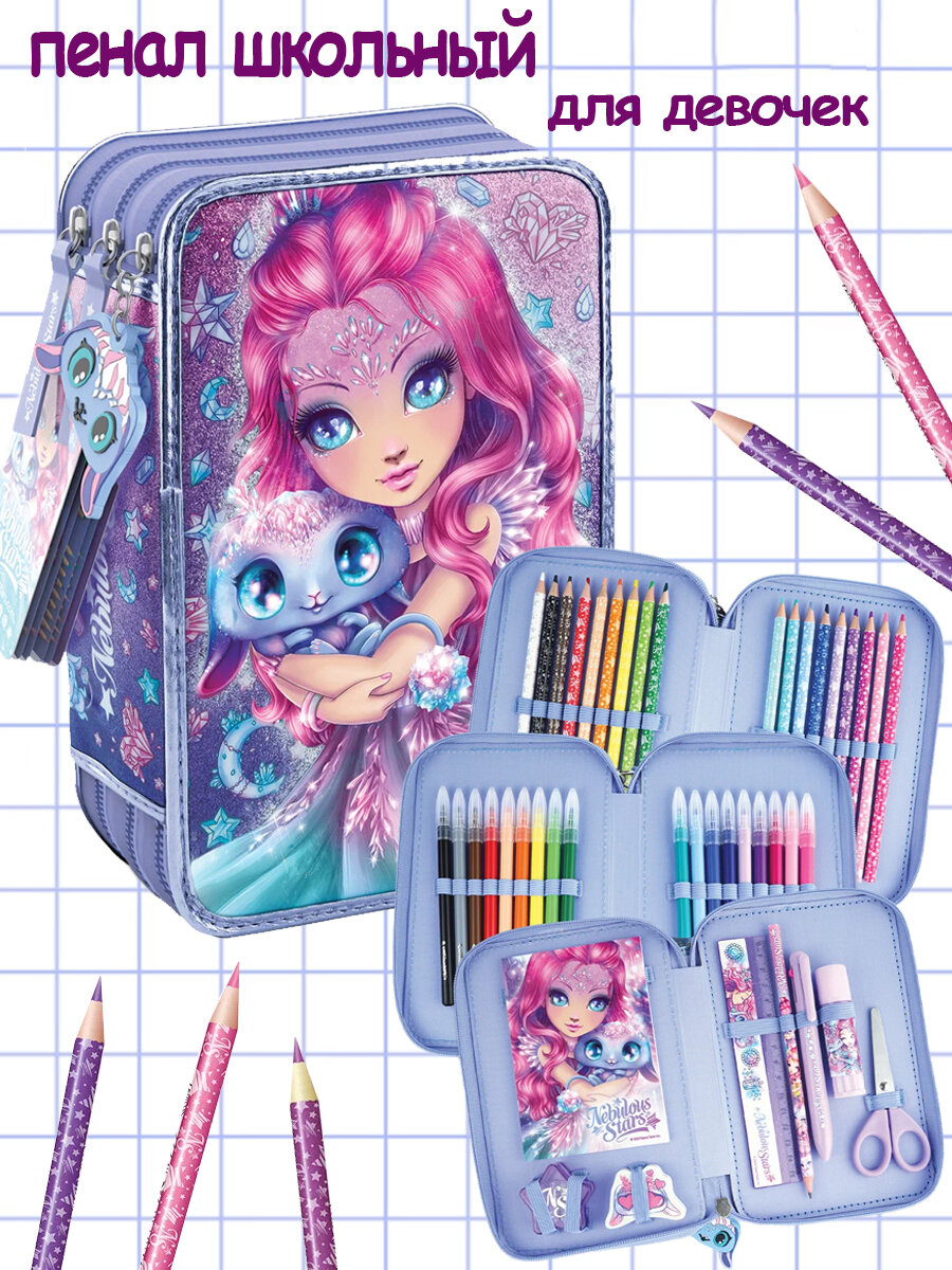 Звёздочка Кристалия и её питомец Агата готовы стать надёжными спутниками даже в школе! Яркий трехярусный пенал включает в себя полный набор канцелярских принадлежностей и предлагает готовую коллекцию материалов для творчества. Комплектация: блокнот для раскрашивания, 18 ярких маркеров, 18 цветных карандашей, коллекционный ластик, ножницы, клей-карандаш, точилка, линейка, четырёхцветная шариковая ручка и простой карандаш.