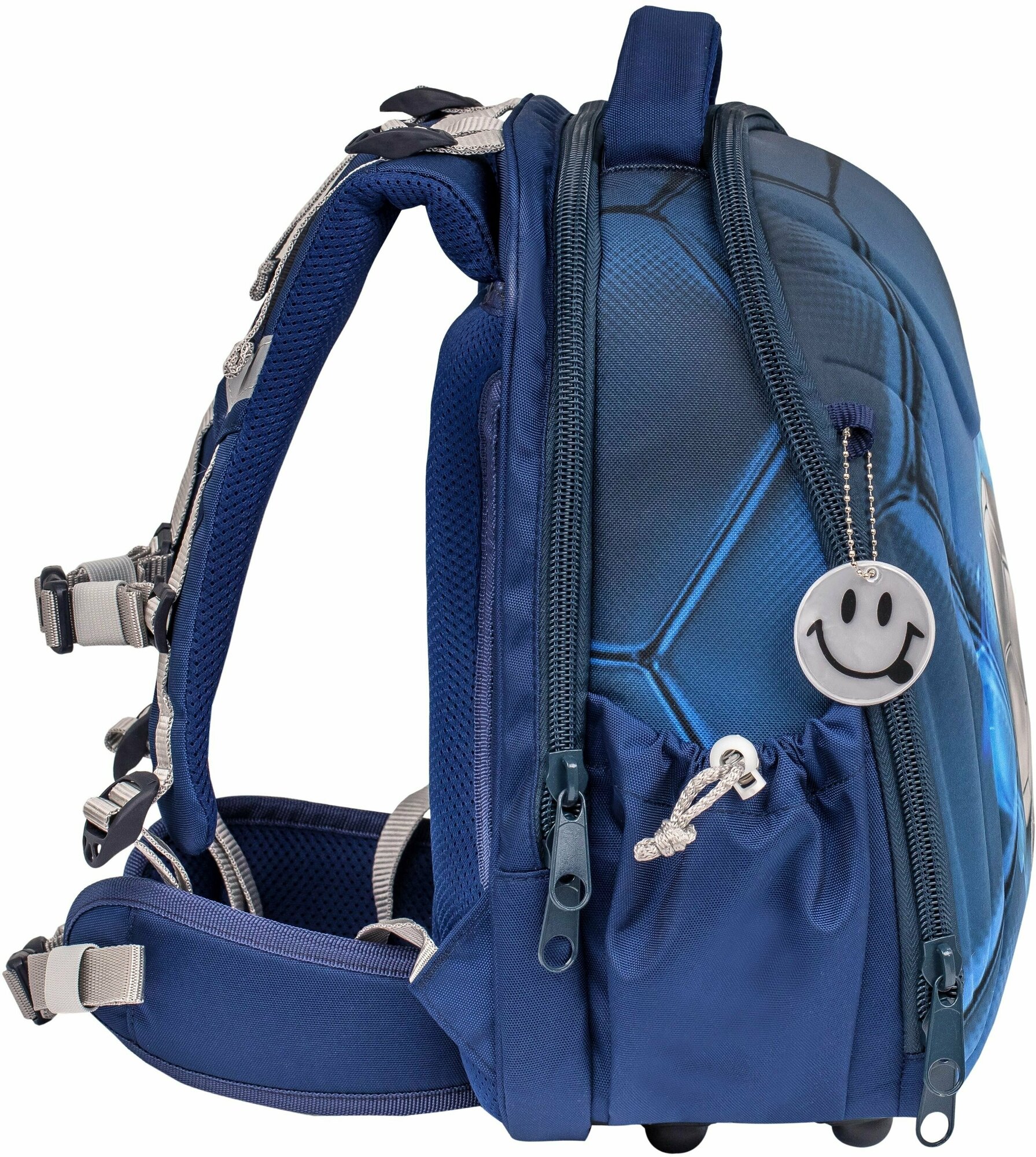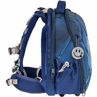 Ранец новой формы с жесткой передней панелью изготовлен из EVA-материала с повышенной износостойкостью. Материал верха ранца не промокает, не выгорает, не выцветает и легко моется губкой. Внутренняя подкладка устойчива к порезам и загрязнениям. Анатомическая спинка повторяет естественный изгиб позвоночника. Наплечные лямки регулируются на нужную длину. Нагрудный фиксирующий ремень. Удобная широкая эргономичная ручка для переноски с мягкой подкладкой. Съемный набедренный ремень. Два отделения на молнии, в которых легко поместятся тетради, учебники и альбомы формата А4. В основном отделении расположен органайзер с несколькими отсеками для канцелярии, специальный мягкий карман для мобильного телефона и карман для ключей. Два боковых кармана на утяжке. Подходит для бутылки воды, сока или зонтика. Уплотненное дно с пластиковыми ножками.