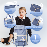 Школьный рюкзак ДОМ ХИТ дети 9 в 1, для девочек и мальчиков, регулируемые лямки, набор аксессуаров, голубой: сравнение цен, характеристики, фото, актуальное наличие и цены.