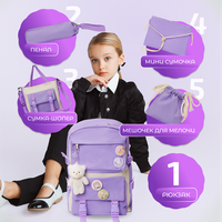 Школьный рюкзак ДОМ ХИТ дети 9 в 1, для девочек и мальчиков, регулируемые лямки, набор аксессуаров, сиреневый: сравнение цен, характеристики, фото, актуальное наличие и цены.