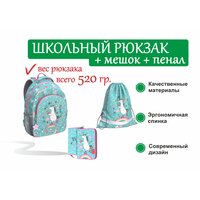 Классический рюкзак с эргономичной спинкой, 28x39x14 см. Вес 520 г делает его одним из самых легких в своей категории (вес указан без дополнительной фурнитуры). Материал: износо- морозостойкий водоотталкивающий 100% полиэстер. Полезный объем - 15 литров. Внутри вместительное отделение с фиксатором для учебников формата А4+, мини-органайзером и карманом на молнии. Снаружи большой передний карман на молнии и два боковых кармана на резинке. Надежные молнии с мягким ходом оснащены бегунками с логотипом ErichKrause®. Конструкция ErgoLine®System из эргономических подушечек снижает нагрузку на позвоночник. Спинка и внутренняя сторона лямок с противооткидами выполнены из дышащей сетки AirMesh, структура волокон обеспечивает вентиляцию и защиту от трения. Мягкие лямки с противооткидами равномерно распределяют вес и не давят на плечи. Дно, усиленное внутренней откидывающейся вставкой, обеспечивает дополнительную устойчивость, а пластиковые ножки защищают от загрязнений и влаги. Классический жестко-каркасный пенал-книжка с внутренней системой фиксации школьных принадлежностей. Пенал изготовлен из износостойкого 100%-го полиэстера. Пеналы имеют расширенную молнию, что облегчает постоянное закрытие и открывание пенала. Надежная молния с мягким ходом оснащена удлиненным бегунком с логотипом ErichKrause. Мешок для обуви увеличенного размера 365х440 мм со светоотражающими элементами. Материал: износо- морозостойкий водоотталкивающий 100% полиэстер.