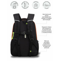 Эту серию рюкзаков GRIZZLY мы разработали для мальчиков старших классов. Они рассчитаны на рост от 150 см. Рюкзаки яркие и стильные — нравятся подросткам. Рюкзак сделан из плотного полиэстера и хорошо держит форму. Есть светоотражающие элементы. Все швы аккуратно прошиты, а где это нужно, усилены дополнительно. Допустимая нагрузка — 7 кг. Чтобы от такого веса не пострадала осанка, мы сделали анатомическую спинку. Широкие лямки с нагрудной стяжкой со свистком снижают нагрузку на плечи. Несмотря на то, что подросткам приходится носить с собой много вещей, в школьный рюкзак они помещаются. Здесь есть два больших основных отделения для книг, тетрадей и документов формата А4. Много внутренних и внешних карманов, пенал, брелок для ключей, отделение быстрого доступа для документов и кошелька. Материал рюкзака с водо- и грязеотталкивающей пропиткой. Если рюкзак все же чем-то испачкался, мы рекомендуем ручную стирку в холодной воде. С уважением, команда GRIZZLY