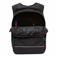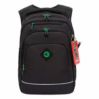 Купить Школьный рюкзак с эргономичной спинкой GRIZZLY RB-450-1/3 черный — зеленый, грудная стяжка, 2 отделения, 636 грамм, 40x25x22см, 14.5л. с доставкой по всей России.
