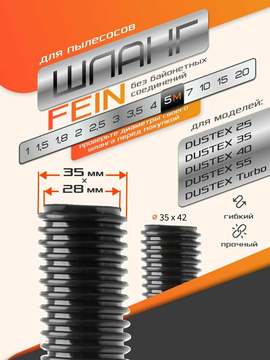 Шланг 5 м для пылесоса Fein DUSTEX 25, DUSTEX 35, DUSTEX 40, DUSTEX 55, DUSTEX Turbo: сравнение цен, характеристики, фото, актуальное наличие и цены.