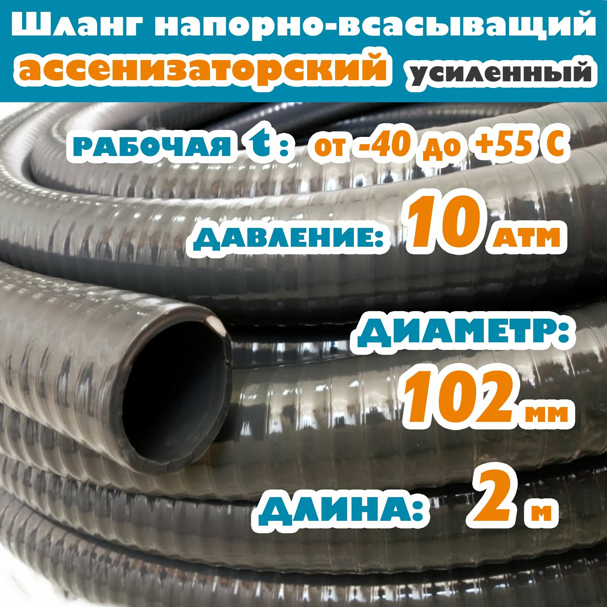 Купить Шланг Ассенизаторский (усиленный) 102 мм (4″), 10 атм, гофрированный, ударопрочный, морозостойкий ПВХ от -40С до +55С, защита от УФ, серый, 2м с доставкой по всей России. Шланг Ассенизаторский (усиленный) 102 мм (4″), 10 атм, гофрированный, ударопрочный, морозостойкий ПВХ от -40С до +55С, защита от УФ, серый, 2м: сравнение цен, характеристики, фото, актуальное наличие и цены.