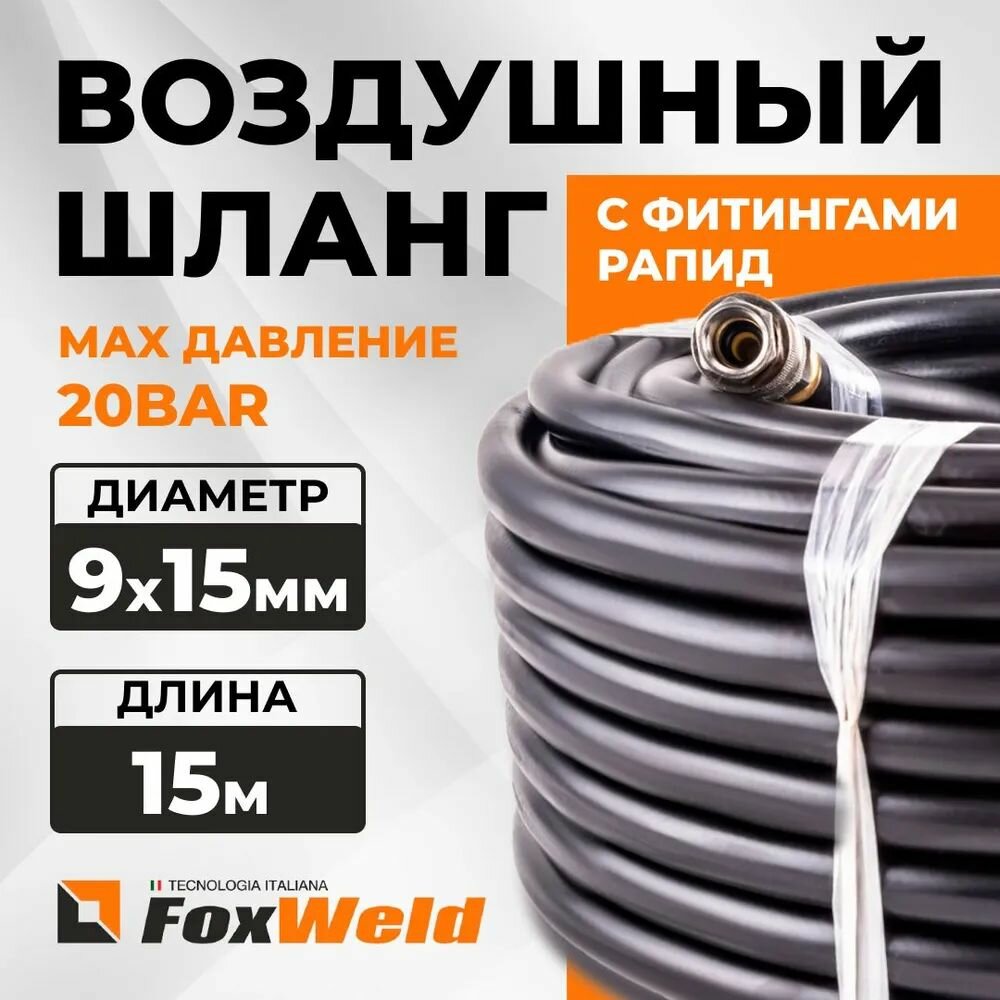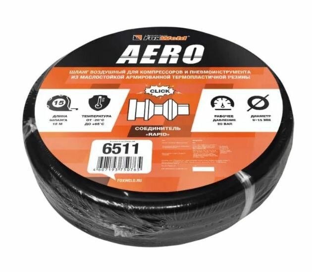 | Дополнительная информация | Шланг воздушный FoxWeld AERO, резина 9х15 мм, 20 бар, 5 м |