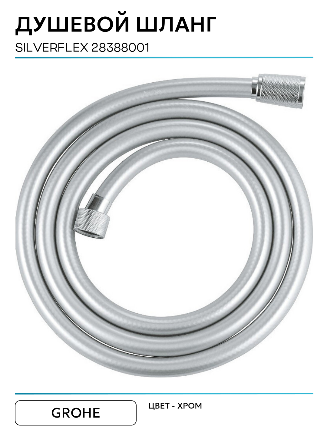 Шланг для душа Grohe Silverflex 28388001 - это высококачественный продукт от известного бренда Grohe, который зарекомендовал себя на рынке сантехники благодаря своей надежности и долговечности.