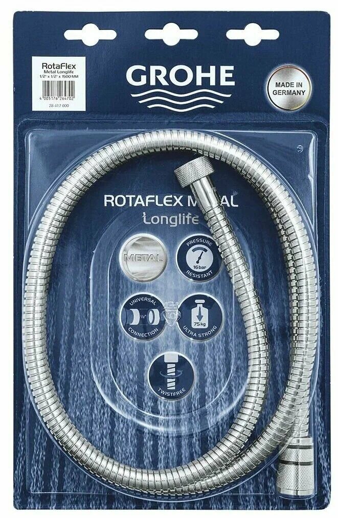 Шланг для душа Grohe Rotaflex Metal Long-Life TwistStop 1500, металлический, хром 28417001: сравнение цен, характеристики, фото, актуальное наличие и цены.