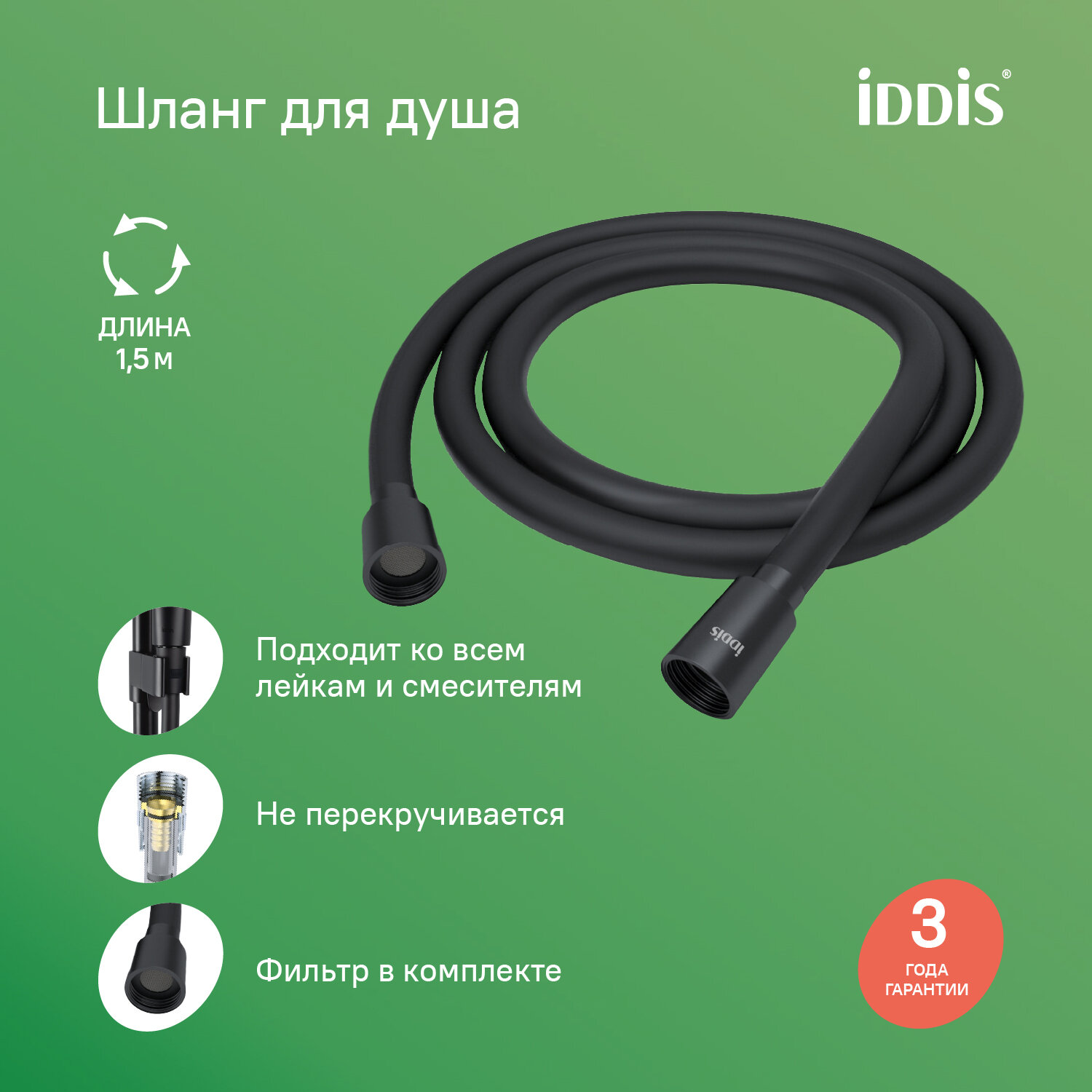 Шланг для душа IDDIS Optima Home OPH15BLi19 черный матовый силиконовый 1,5м: сравнение цен, характеристики, фото, актуальное наличие и цены.