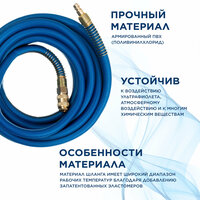 --- Преимущества: Шланги оборудованы латунными быстросъемными соединениями папа и мама; Материал шланга имеет широкий диапазон рабочих температур благодаря добавлению запатентованных эластомеров; Материал шланга устойчив к воздействию ультрафиолета;