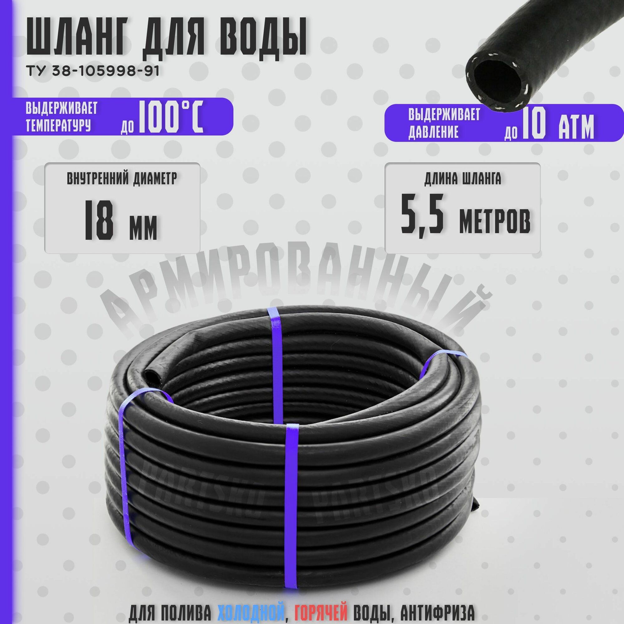 Шланг для полива 3/4 дюйма / 5.5 метра. Резиновый для сада, дома и дачи. Армированный поливочный шланг 3-х слойный для горячей/холодной воды и антифриза. Высокопрочный из резины.