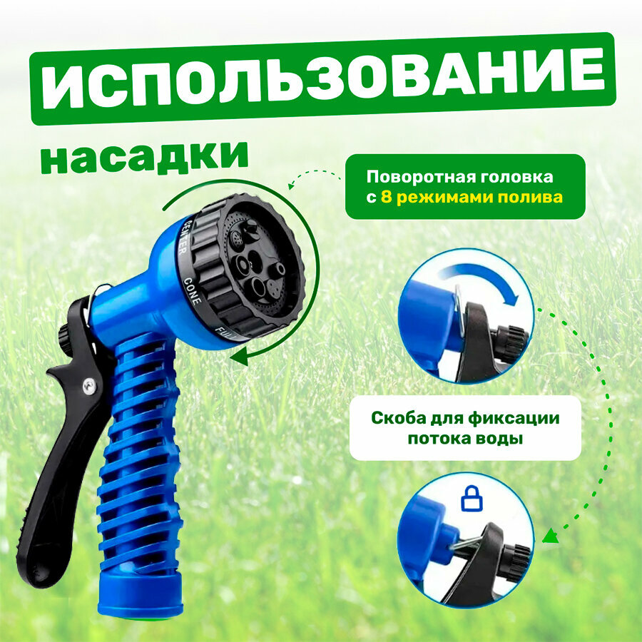 Эти материалы позволяют шлангу удлиняться в 3 раза. Они также обеспечивают данной модели безопасное хранение и долговечность.