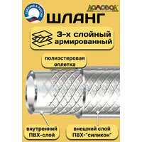 Шланг для полива силиконовый армированный усиленный особопрочный прозрачный d 16 мм изготовлен из 3-х слоев: ПВХ. полиэстеровая оплетка и силикон. Специальное плетение нити обеспечивает работу под высоким давлением. Используется для полива и насосов. Температурный режим от -20 градусов до+55 градусов. Выдерживает давление 9 бар. Устойчив к УФ-излучению (не боится солнечных лучей), не содержит Cd , не токсичен, безопасен для человека и окружающей среды . Подходит под коннекторы 1/2. За счет утолщенных стенок (3 мм) обеспечивается длительный срок эксплуатации. Не перекручивается, может перегибаться, но заломы не остаются. Хорошо подобранное сочетание силикона и армировки придает шлангу особую прочность, гибкость и эластичность. Очень удобен в использовании. Внутренний диаметр шланга 16 мм . Наружный диаметр 22 мм. Для соединения с водопроводом необходим штуцер d 16 мм.
