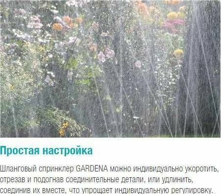 Шланг-дождеватель зелёный 15 м GARDENA оптимально подходит для бережного орошения грядок, бордюров и узких площадок. В комплект поставки шланга входят необходимые соединительные элементы системы GARDENA, поэтому всё, что Вам нужно - это подключить шланг к источнику воды. Шланг-дождеватель зелёного цвета длиной 15 м предусматривает возможность наращивания путем простого подсоединения до 22,5 м. (необходимо использовать комплект фитингов для шланга-дождевателя GARDENA, арт. 05316). Шланг может быть укорочен по желанию пользователя. Для этого нужно просто обрезать шланг, отмерив нужную длину, и установить соединительные элементы. Гарантия на шланг 2 года. Для легкого полива небольших участков.