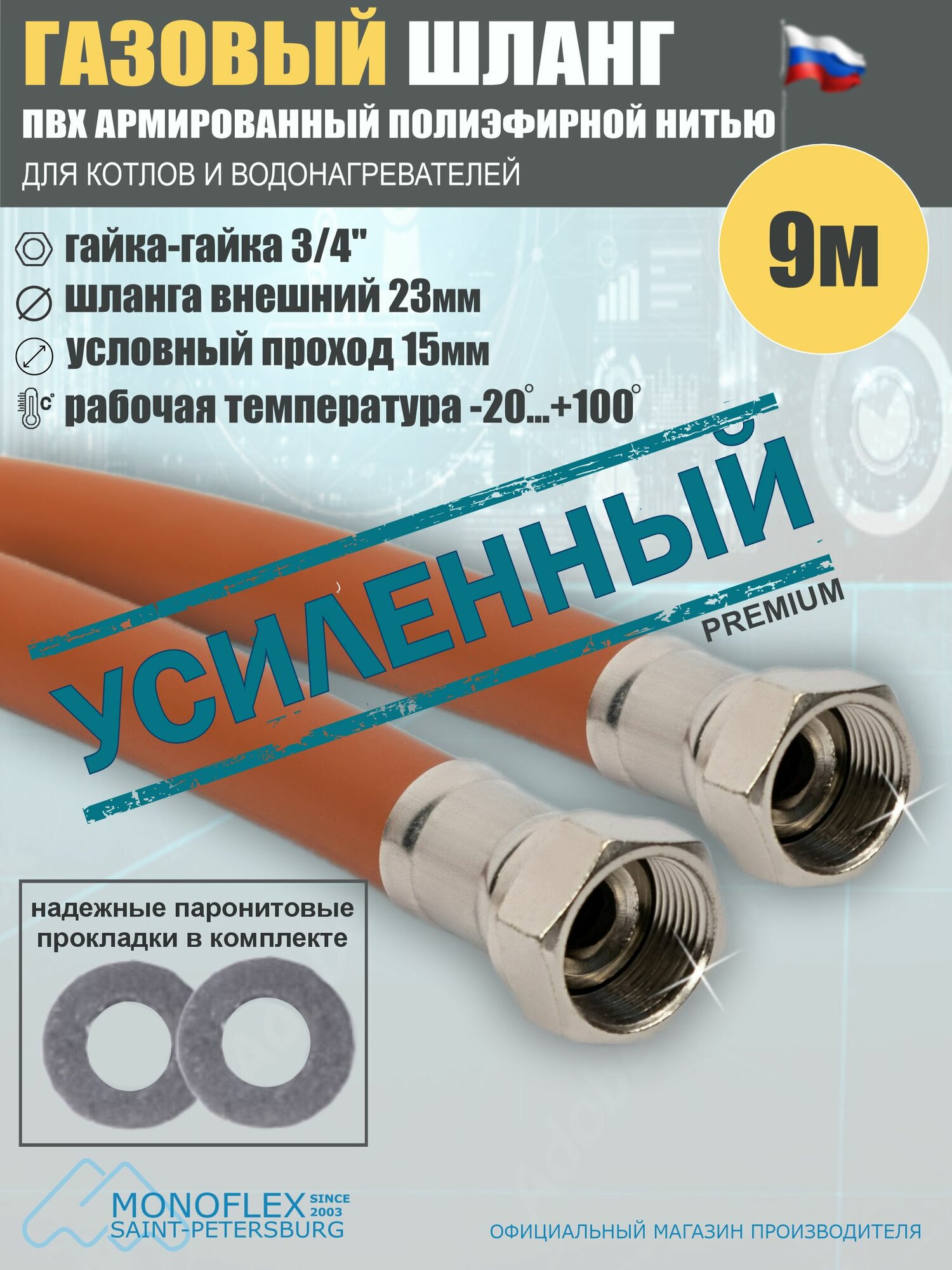 Газовый шланг MONOFLEX Nord Stream с уникальным конструктивом фитинга для безупречной герметичности и надежного соединения, применяется для подключения газовых плит, колонок и других бытовых газовых приборов.