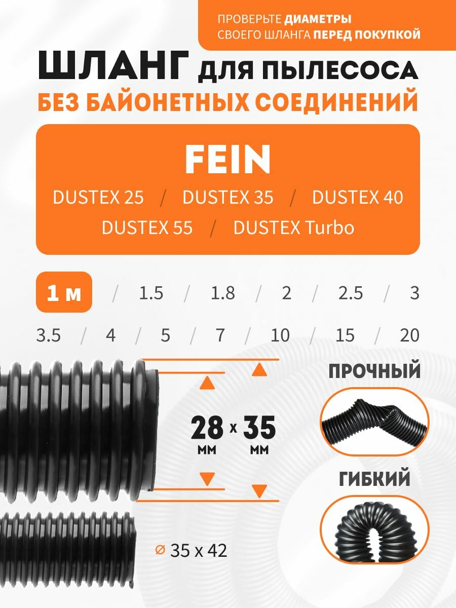 Шланг гибкий 1 м для пылесоса Fein DUSTEX 25, DUSTEX 35, DUSTEX 40, DUSTEX 55, DUSTEX Turbo: сравнение цен, характеристики, фото, актуальное наличие и цены.