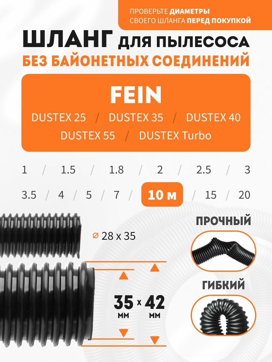 Шланг гибкий 10 м для пылесоса Fein DUSTEX 25, DUSTEX 35, DUSTEX 40, DUSTEX 55, DUSTEX Turbo: сравнение цен, характеристики, фото, актуальное наличие и цены.
