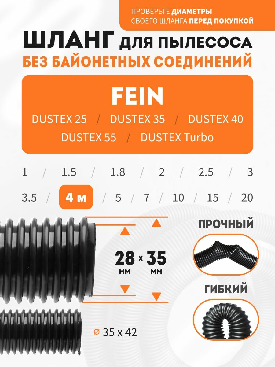 Шланг гибкий 4 м для пылесоса Fein DUSTEX 25, DUSTEX 35, DUSTEX 40, DUSTEX 55, DUSTEX Turbo: сравнение цен, характеристики, фото, актуальное наличие и цены.
