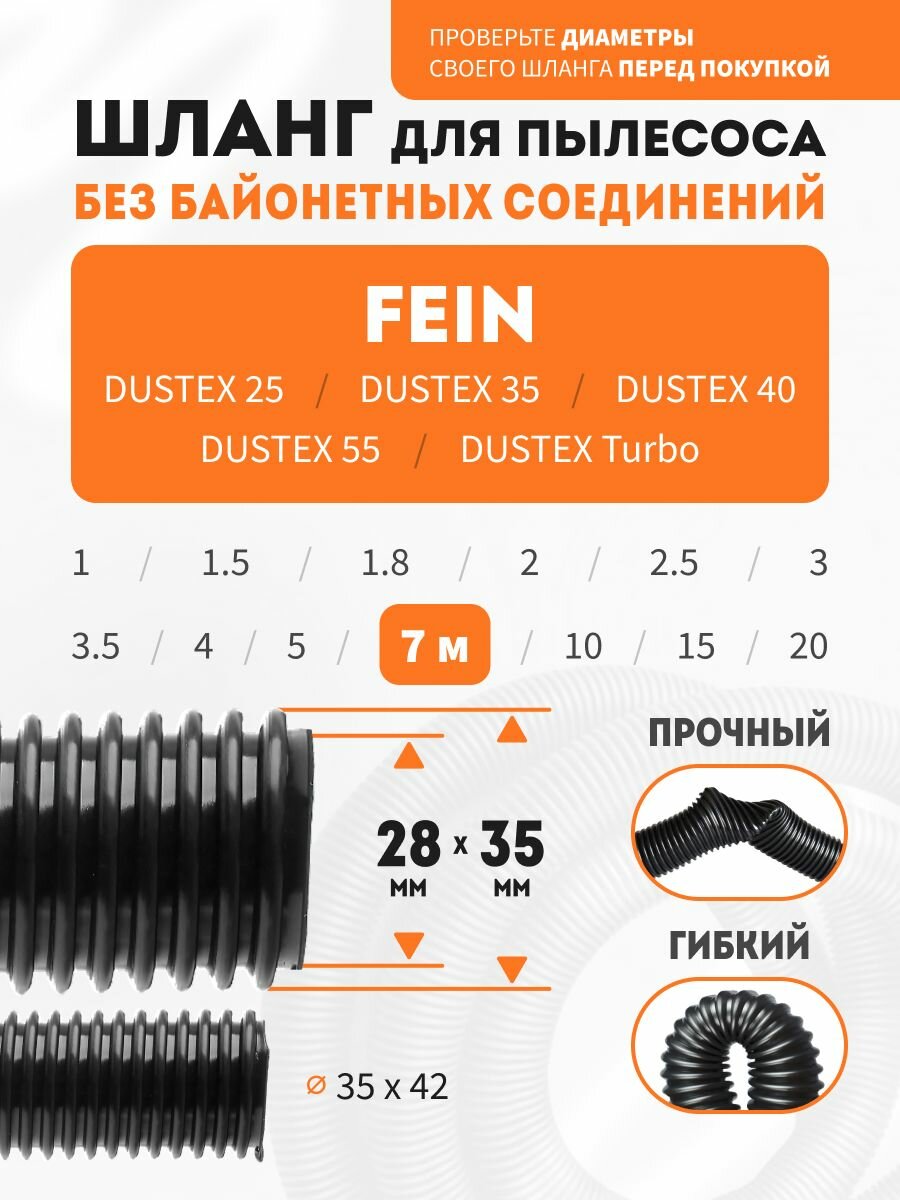 Шланг гибкий 7 м для пылесоса Fein DUSTEX 25, DUSTEX 35, DUSTEX 40, DUSTEX 55, DUSTEX Turbo: сравнение цен, характеристики, фото, актуальное наличие и цены.