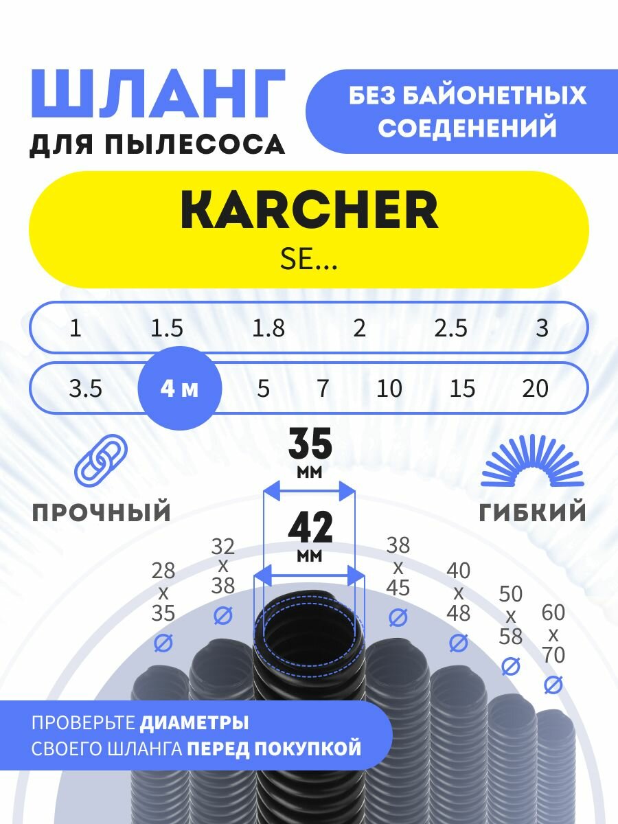 Шланг гибкий для пылесосов Karcher серий SE 4 м: сравнение цен, характеристики, фото, актуальное наличие и цены.