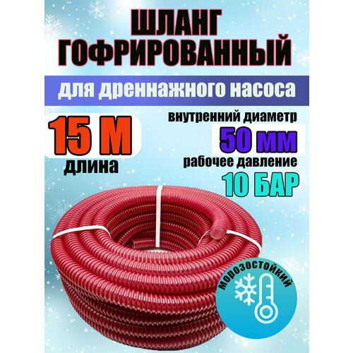 Шланг гофрированный (внутренний диаметр 50 мм, длина 15 метров) для дренажного насоса / напорно-всасывающий / морозостойкий/ зимний/морозоустойчивый/ произведен из эластичного морозостойкого ПВХ (сохраняет гибкость, не дубеет при низких температурах) и армирован ударопрочной спиралью из ПВХ.