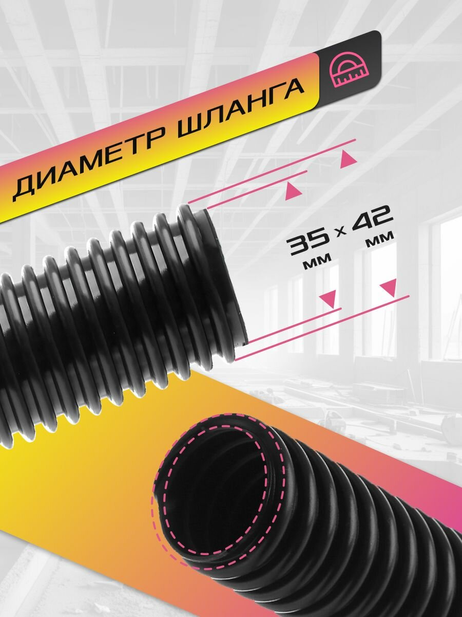 Этот удобный гибкий шланг для KARCHER – неотъемлемая часть эффективной работы вашего пылесоса. Он разработан, чтобы повысить эффективность уборки и расширить возможности вашей техники. Забудьте о перегибах и потере мощности! Технические параметры: Внутренний диаметр – 35 мм, внешний – 42 мм, длина – 3.5 м. Совместимость: полный список вы можете посмотреть начиная с 4 картинки. Основные преимущества шланга для пылесоса керхер: Благодаря своей специально разработанной структуре, гофра шланга обладает повышенной устойчивостью к нежелательным перегибам и скручиваниям Гибкость материала позволяет легко маневрировать в труднодоступных местах. Использование износостойких материалов гарантирует долгий срок службы и устойчивость к повреждениям. Этот шланг также позволяет немедленно собирать образующиеся при работе пыль, опилки или стружку. Материал шланга обладает умеренной устойчивостью к изменениям температуры в пределах стандартных условий эксплуатации, что позволяет использовать его в различных ситуациях без потери эластичности и функциональности. С этим шлангом ваш пылесос карчер станет еще удобнее и эффективнее.