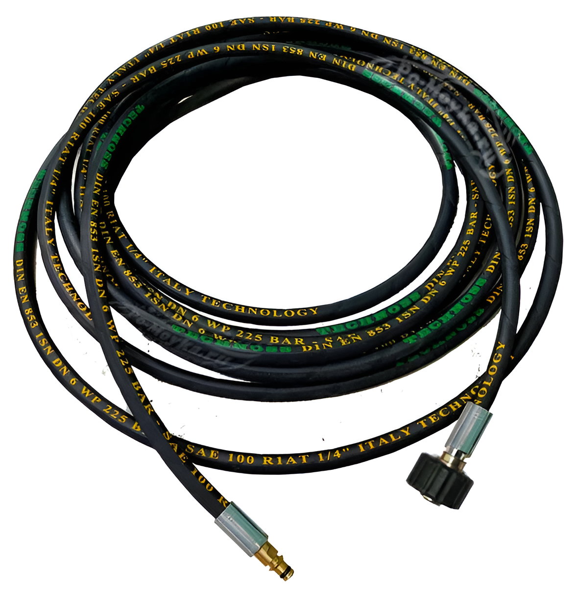 Оригинальная информация полностью скопирована с магазина сайта По-Мойка. ру (прямого поставщика товара). Шланг высокого давления на минимойку Karcher длиной 10 метров 1SN06 (металл) М22х1,5 гайка-8 штуцер. Прочный одно-оплёточный шланг на 10-ть метров под автомойку Керхер (серий бытового направления) 1SN06 гайка (м22х1,5 – 8 штуцер) соединяется с кнопочными курками. Большую часть минимоек высокого давления Karcher с 2008 года выпуска комплектуют быстросъёмными соединениями (под 8 штуцер) на подключении непосредственно к насосу. Но есть большая вероятность что такой БРС переход приходит быстро в непригодность, и мы рекомендуем его открутить, тогда шланг высокого давления по одну сторону гайка М22х1,5, а с другой штуцер (усечённый) 8 мм будет Вам кстати. Также такого рода рукав устанавливается на мойки Керхер, где есть кнопочный курок и соединение с мойкой под гайку. Прочность (не смотря на китайское происхождение рукава) максимальна, ведь в нём протянута (внутри прорезиненной оплётки) железная нитка, которая выдерживает более 300-от Бар самой автомойки. Учтите, что производитель моек Керхер многих поставил в тупик с запчастями и элементарными аксессуарами – поэтому у нас простая просьба: максимально знать о подключении к Вашему аппарату самого шланга всё.