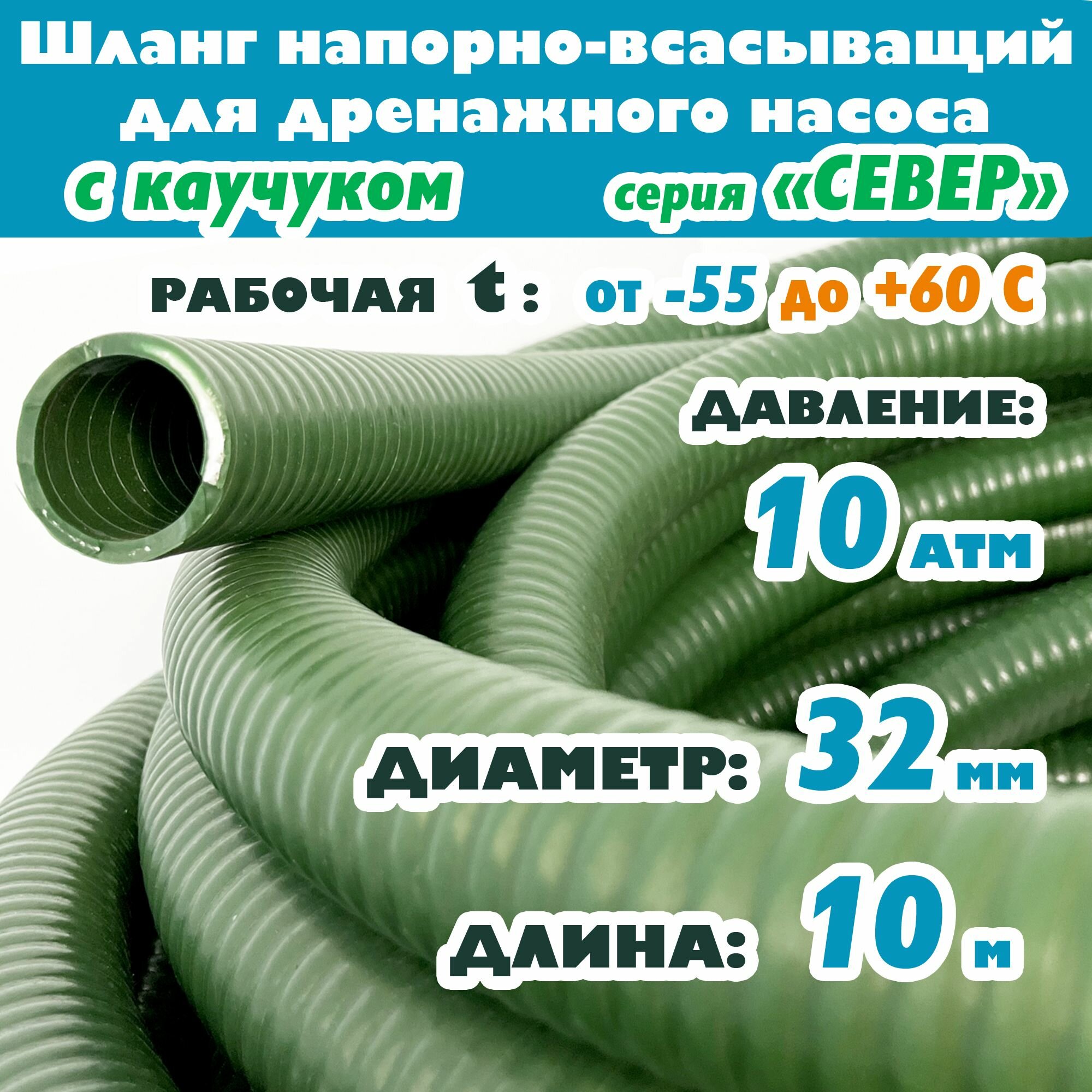 Купить Шланг напорно-всасывающий 32 мм (1 1/4″) 10 атм (север мороз до -55С) для дренажного насоса гофрированный ( ПВХ / Каучук ) защита от УФ зеленый 10м с доставкой по всей России. Шланг напорно-всасывающий 32 мм (1 1/4″) 10 атм (север мороз до -55С) для дренажного насоса гофрированный ( ПВХ / Каучук ) защита от УФ зеленый 10м: сравнение цен, характеристики, фото, актуальное наличие и цены.
