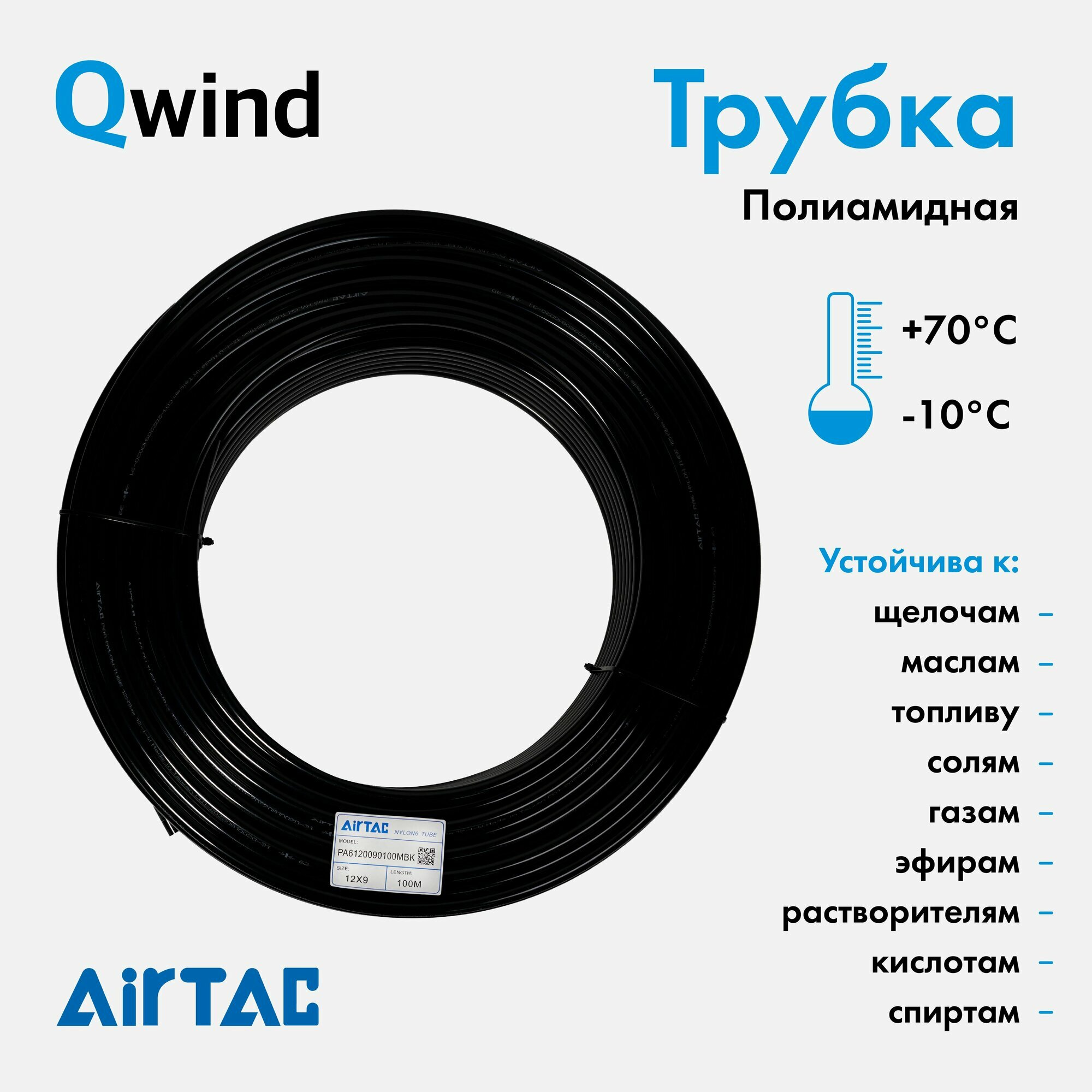 Шланг пневматический полиамидный Airtac PA6120090100MBK, диаметр 12/9 мм, 20 bar, пневмотрубка длина 100 м: сравнение цен, характеристики, фото, актуальное наличие и цены.