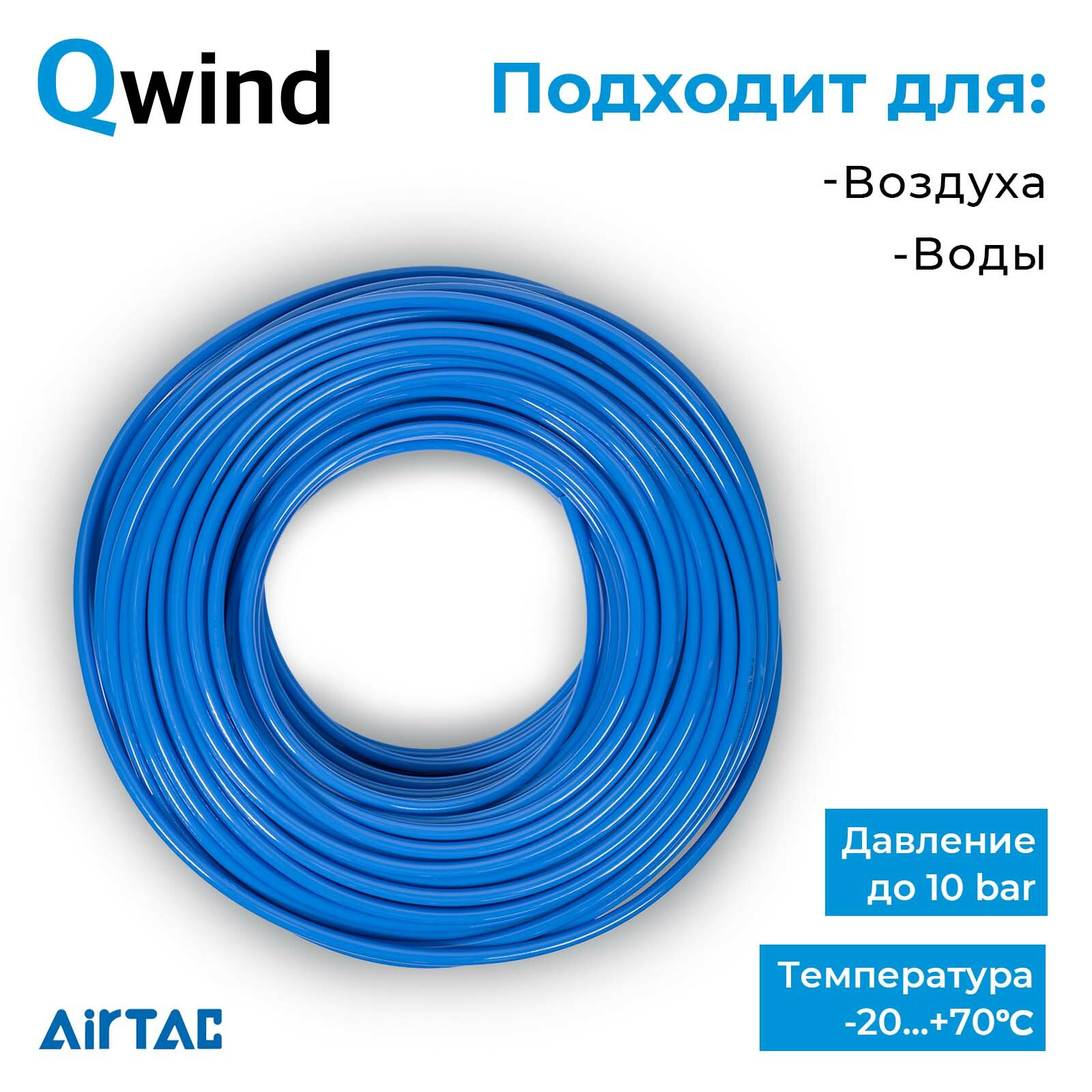 Материал шланга - полиуретан TPE-U(PU), который обеспечивает его прочность и долговечность. Минимальный радиус изгиба составляет 25 мм, что делает его гибким и удобным для использования в различных условиях.